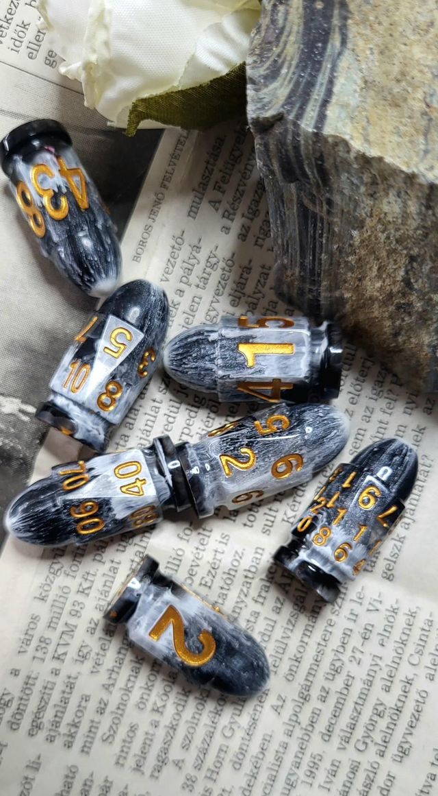 Lépj át a kalandok világába egy különleges, kézműves kockaszettel! A gyantából öntött, csiszolt és polírozott kockák tartósak és látványosak, így nemcsak a játékhoz, hanem gyűjteményed díszeként is mesés kincs lehet belőlük.