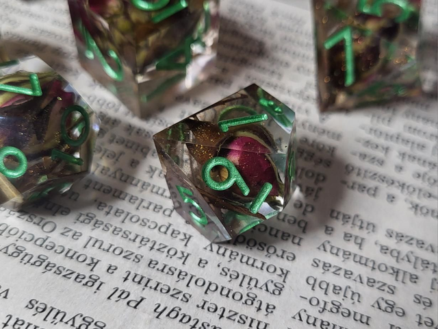 Lépj át a kalandok világába egy különleges, kézműves kockaszettel! A gyantából öntött, csiszolt és polírozott kockák tartósak és látványosak, így nemcsak a játékhoz, hanem gyűjteményed díszeként is mesés kincs lehet belőlük.